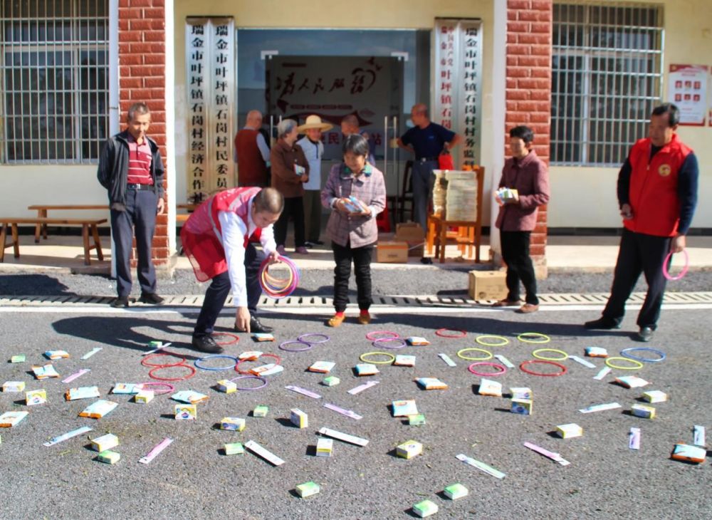 活动在套圈游戏中拉开序幕,老人们热情参与,瞄准心仪的目标奋力投掷,成功套中后即可领取香皂、食盐、纸巾等实用小礼品。“今天不仅拿到了爱心商家给我们拍的照片,还玩了套圈游戏,我觉得非常开心。”石岗村村民毛大源拿着照片笑着说。