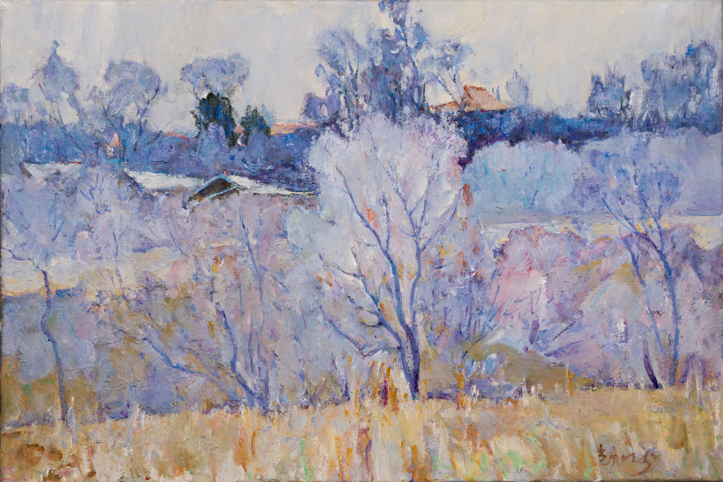 展览现场,作品按四季时序陈列,带领观众走进一段光与色的艺术旅程。郑光旭的油画既保留了欧洲油画语言的纯粹性,又深刻融入了东方美学的意境与精神。他的笔触扎根于中国风土人情,捕捉生活中平凡而永恒的美感,展现出中西艺术交融的深厚修养。中国美术家协会《美术》杂志原主编王仲在观展后表示,郑光旭的作品“已经展现出一种难得的成熟”,其艺术成果来源于长期写生与实践中对艺术规律的不懈探索。